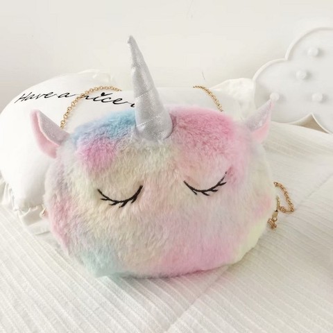 Unicorn lông mini Ba lô đầy màu sắc sang trọng Satchel phụ nữ ba lô Unicorn ba chiều lông Ba lô cho cô gái